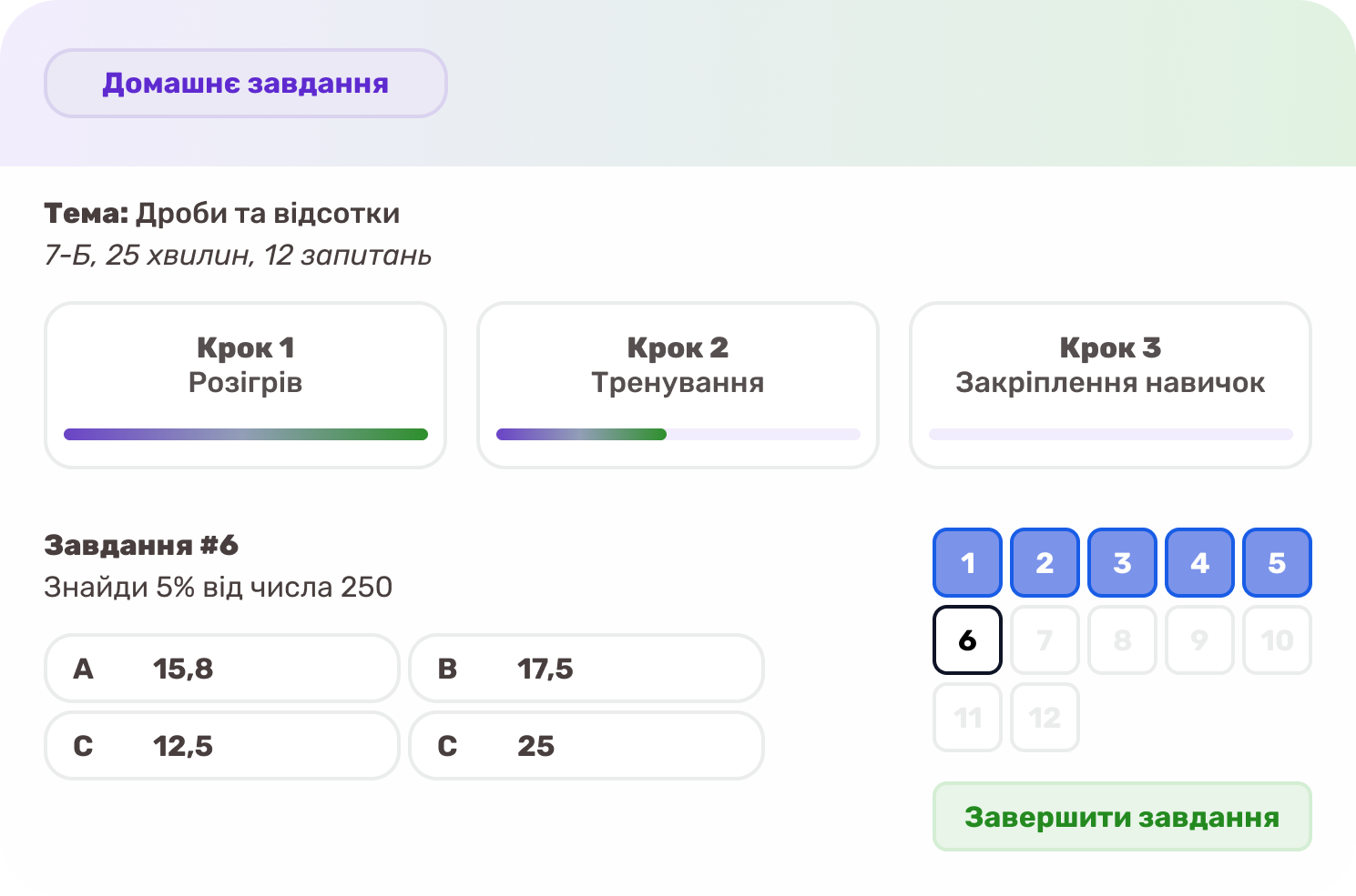 Ігри, тести, контрольні, симуляції НМТ, олімпіади та кабінети з аналітикою — щоб учням було цікаво, а вчителям і школам — системно та швидко.